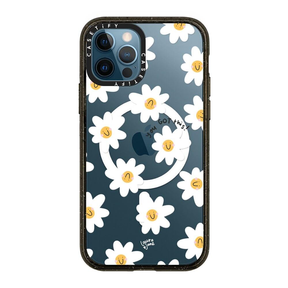 CASETiFY Impact iPhone 12 Pro Case [4X Military Grade Drop Tested / 8.2ft Drop Protection/Compatible with Magsafe] - Daisies - Clear Black