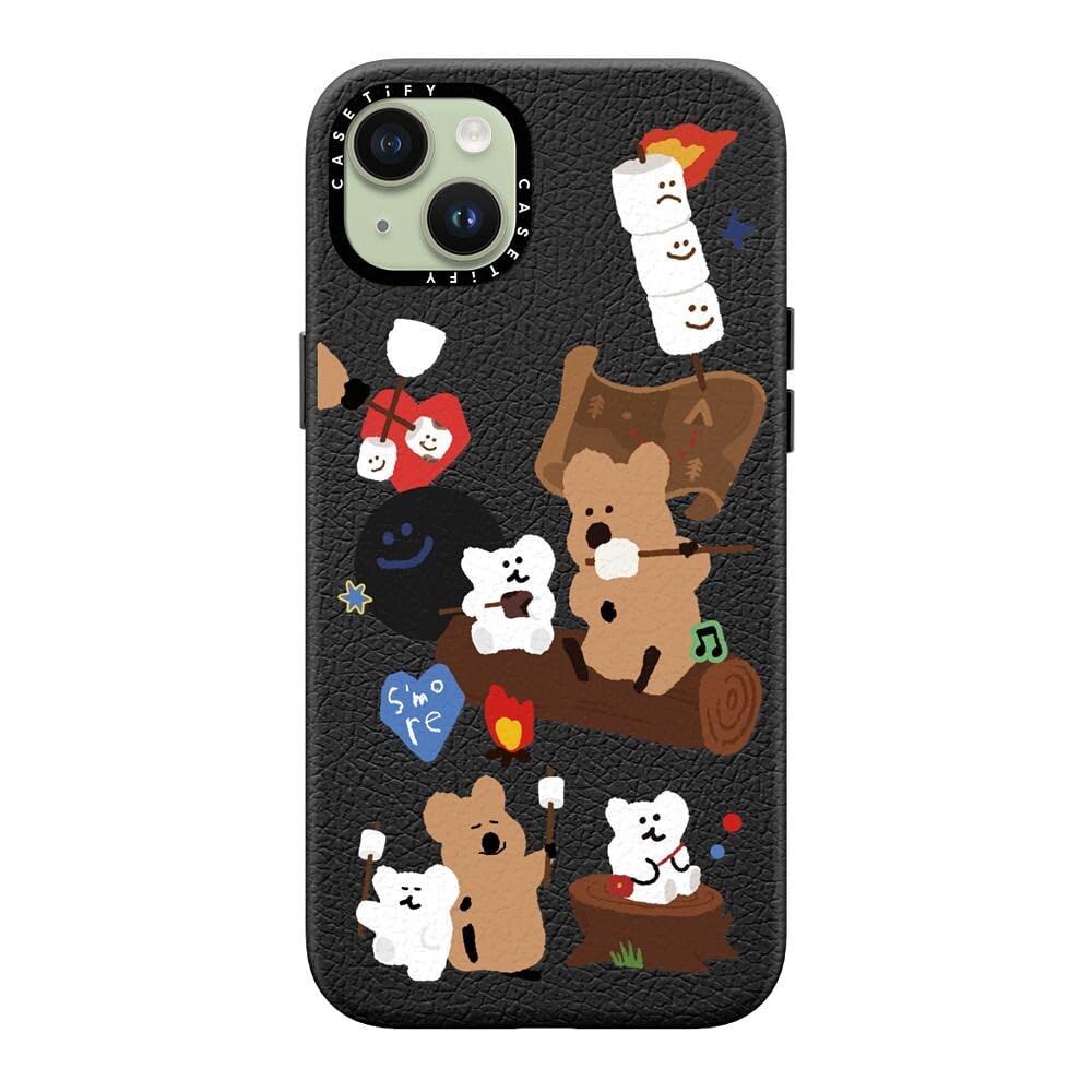 CASETiFY Pebbled iPhone 15 Plus Case [Textured / 4.9ft Drop Protection/Compatible with Magsafe] - Cute Prints - S'More ! - Jet Black